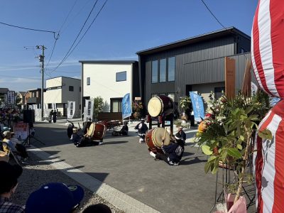 11月14~16日、大分市森町で住宅フェアシラシンケンProjectのグランドオープンセレモニーに14日10時~式典後、「おおいた太鼓倶楽部」大人グループの演奏、15.16日は13時~「鐵心太鼓」が演奏させて頂きました。天候もよく多くの人が訪れ、もちまきや、展示会を楽しんでいました。
